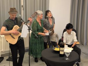 Sur cette page, vous découvrirez des photos de l’apéritif et de l’animation musicale entre deux verres. Si vous souhaitez en télécharger (rien que pour vous, d’accord?), cliquez sur une image, puis faites un clic avec le bouton de droite, sélectionnez « enregistrer sous… » et indiquez la destination.